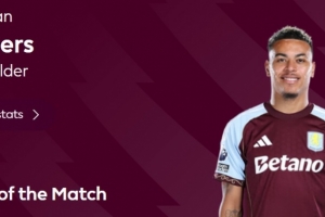 本場比賽上半場維拉球員羅杰斯打進遠(yuǎn)射世界波,賽后他也當(dāng)選英超官方球迷票選全場最佳球員。