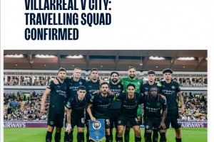 體育資訊10月20日訊 曼城公布了10月22日周三客戰(zhàn)比利亞雷亞爾的歐冠大名單。