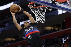 活塞球員奧薩爾-湯普森本場比賽打得不錯,攻防兩端表現(xiàn)都相當高效。