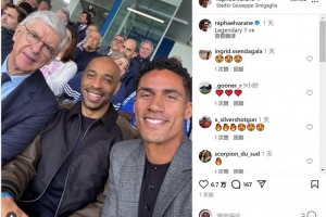 體育資訊10月21日訊 瓦拉內(nèi)更新社媒動(dòng)態(tài),曬出與溫格、亨利的合照。