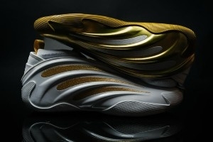 非常符合今天戒指之夜的主題,白金的鴛鴦配色。細(xì)節(jié)上有標(biāo)志性的慶祝手勢(shì),鞋底還有總冠軍獎(jiǎng)杯圖案,鞋墊處則有偶像科比的畫像。