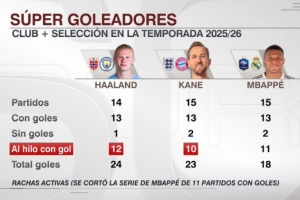 體育資訊10月23日訊 ESPN統(tǒng)計了哈蘭德、凱恩、姆巴佩本賽季俱樂部+國家隊的數(shù)據(jù),并做出對比。