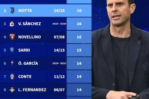 德轉(zhuǎn)盤點了自2000年以來,五大聯(lián)賽球隊主帥在執(zhí)教球隊前30場比賽平局場次紀錄,其中莫塔以16平居次席,以下為具體榜單: