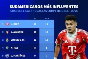 體育資訊10月24日訊 德國轉(zhuǎn)會市場統(tǒng)計了本賽季五大聯(lián)賽南美球員的參與進(jìn)球數(shù)量,并列出榜單,路易斯-迪亞斯參與11球居首,阿爾瓦雷斯、維尼修斯參與10球次席。