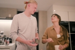 和女友一起烹飪時(shí),場(chǎng)上兇猛的哈蘭德展現(xiàn)出了溫柔的一面。兩人是小時(shí)候在挪威Bryne當(dāng)?shù)厍嘤?xùn)學(xué)院效力時(shí)認(rèn)識(shí)的,哈蘭德形容伊莎貝爾的球風(fēng)像吉格斯,有著同樣犀利的左路突破和精準(zhǔn)傳中。兩人互相調(diào)侃時(shí),哈蘭德顯得很開(kāi)心。伊莎貝爾嘲笑他缺乏盤帶能力,并說(shuō)她最初喜歡的是他的好朋友。