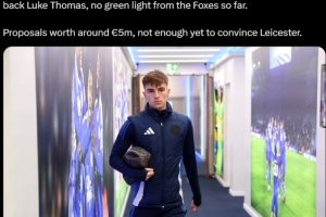 報(bào)道稱霍芬海姆提出的報(bào)價(jià)在500萬(wàn)歐左右,還未能達(dá)到萊斯特城的期望。盧克-托馬斯現(xiàn)年23歲,本賽季代表萊斯特城僅在英超有過(guò)2次出場(chǎng)。