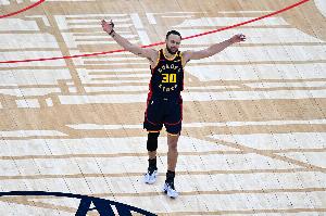 庫(kù)里此役25中14、其中三分12中6,轟下42分6板7助1帽!