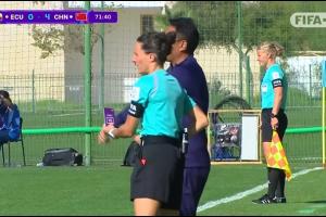 體育資訊10月24日訊 U17女子世界杯小組賽C組,厄瓜多爾女足U17vs中國女足U17。比賽第73分鐘,中國隊教練組申請VAR挑戰(zhàn),認為對手禁區(qū)內(nèi)手球。裁判觀看回放后判認定不是點球。