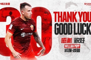 經(jīng)友好協(xié)商,巴西球員威廉·波普正式離隊(duì)。俱樂(lè)部對(duì)球員表示衷心的感謝與祝福。