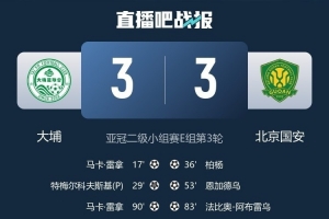 體育資訊10月25日訊 在周中進(jìn)行的亞冠二級聯(lián)賽小組賽比賽中,北京國安客場3-3與中國香港球隊大埔戰(zhàn)平,
