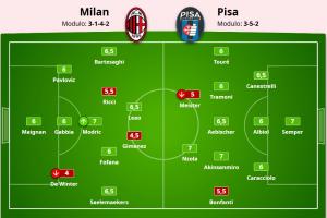 體育資訊10月25日訊 AC米蘭2-2絕平比薩,賽后米體對米蘭將帥的表現(xiàn)進行了打分。