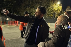 此前備受詬病的主帥阿莫林也在賽后獲得追捧,在比賽結束兩小時后仍然在為曼聯(lián)球迷們簽名合影,他在拿起手機自拍時也露出了開心的笑容。