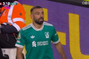 體育資訊10月26日訊 利物浦vs布倫特福德,比賽補(bǔ)時(shí)7分鐘,第101分鐘,薩拉赫先是門前搶點(diǎn)沒進(jìn),之后禁區(qū)外索博遠(yuǎn)射被撲。