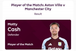 據(jù)賽后英超官方的消息,打進(jìn)制勝進(jìn)球的卡什當(dāng)選此役全場最佳球員,在評(píng)選中獲得58%的投票。