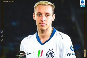 意甲官方曬出弗拉泰西領取獎杯的照片,并寫道:他為這場比賽首開紀錄,并且當選全場最佳球員!
