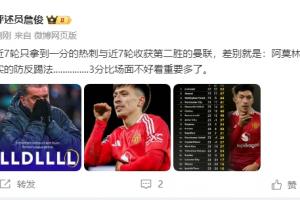 詹?。航?輪只拿到一分的熱刺與近7輪收獲第二勝的曼聯(lián),差別就是:阿莫林采取了務(wù)實(shí)的防反踢法...............3分比場(chǎng)面不好看重要多了。 ???