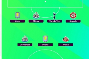 后衛(wèi):卡什(阿斯頓維拉)、佳夫(紐卡斯爾)、范德芬(熱刺)、邁克爾-卡約德(布倫特福德)