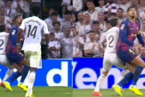 弗里克的球隊整場控球占優(yōu),但踢法很容易預測、缺乏銳度。只有費爾明和拉什福德偶爾能突破皇馬防線。佩德里被重點盯防,亞馬爾無法正面拿球,費蘭觸球機會少且很難獲得舒服的射門位置,全場僅兩次向庫爾圖瓦射門。上半場最佳進攻是費爾明的進球,佩德里斷球后迅速轉化為絕對機會。稍后,費爾明頭球攻門,又被赫伊森在門線救險。