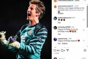 曼聯(lián)官方Instagram寫(xiě)道:“祝門前的那座大山——范德薩生日快樂(lè)!”