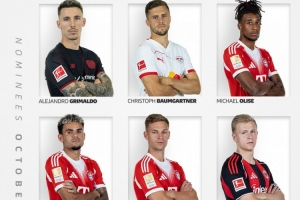 體育資訊10月29日訊 今日,德甲官方公布了10月份聯(lián)賽最佳球員的6名候選人,奧利塞領銜拜仁3將在列。