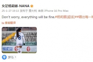 體育資訊1月27日訊 女足球員楊莉娜更新社媒,曬出自己在賽場的照片并配文。