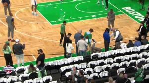 相關(guān)新聞:依舊首發(fā)出戰(zhàn)!恩比德賽前熱身時(shí)踩到場邊工作人員扭到了腳踝