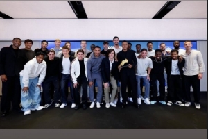 姆巴佩領取了上賽季歐洲金靴獎,維尼修斯社媒曬出全隊合照,配文:“祝賀我的兄弟,姆巴佩?!?/p>