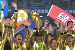 體育資訊11月01日訊 捧杯時(shí)刻!泰州隊(duì)全隊(duì)身著金色戰(zhàn)袍,捧起首屆蘇超冠軍獎(jiǎng)杯!