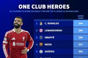 體育資訊11月2日訊 英超第10輪比賽,薩拉赫破門,利物浦主場2-0擊敗維拉。薩拉赫各賽事為利物浦攻入250球,德國轉(zhuǎn)會市場統(tǒng)計了本世紀(jì)五大聯(lián)賽球員為單一俱樂部攻入250球所用場次,并列出榜單。