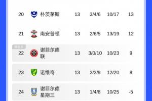 體育資訊11月02日訊 英冠目前已經進行了13輪,目前蘭帕德執(zhí)教的考文垂積28分,領跑積分榜。