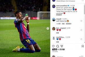 拉什福德社媒曬照慶祝勝利,配文:“主場勝利,氣氛絕佳。感謝大家的支持,蒂埃雷,正如我所承諾,這粒進(jìn)球獻(xiàn)給你?!?/p>