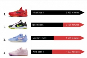 10月份NBA球鞋上腳時(shí)間排行!前二均為科比球鞋 布克第四!