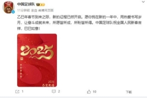 體育資訊1月28日訊 新春佳節(jié)之際,中國(guó)足協(xié)官方、中國(guó)足球隊(duì)官方均發(fā)文送上祝福。