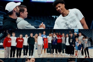在本場比賽賽前,他大學(xué)隊友們都來到了雷霆主場為他加油。費爾斯大學(xué)效力于俄克拉荷馬大學(xué),雖然大學(xué)和雷霆隊不是在一個城市,但距離非常近,俄城也算是費爾斯的半個主場。