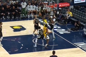 GIF-特納帽翻昆頓-杰克遜,本場(chǎng)第四次蓋帽,此后昆頓回更衣室,步行者官方表示他右腿筋酸痛回歸成疑