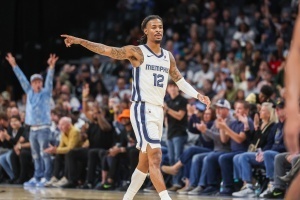 莫蘭特本場比賽解禁復(fù)出,他出場34分39秒,16投5中(三分4中0),罰球9中8,拿到18分6籃板10助攻1搶斷,有5次失誤,正負(fù)值-5。