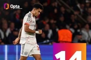 據(jù)Opta統(tǒng)計,迪亞斯已在歐冠打進14球,追平杰克遜-馬丁內(nèi)斯,并列成為歐冠歷史進球最多的哥倫比亞球員。