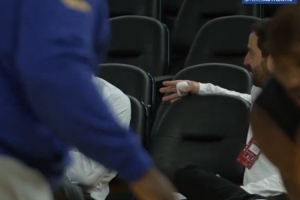 有人拍到庫明加的經(jīng)紀人與勇士總經(jīng)理鄧利維在場邊聊天,而庫明加在鏡頭近景訓練。