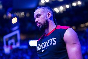 體育資訊1月28日訊 火箭今日客場114-112擊敗凱爾特人,賽后,火箭球員狄龍與阿門-湯普森一同接受媒體采訪。