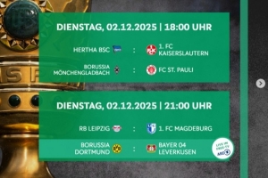 體育資訊11月6日訊 德國(guó)杯1/8決賽各場(chǎng)開(kāi)球時(shí)間公布,12月3日4點(diǎn)勒沃庫(kù)森vs多特蒙德,4日3點(diǎn)45柏林聯(lián)合vs拜仁。