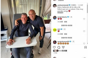 伊涅斯塔社媒曬出與溫蘇埃的合照,配文:“暢談生活與足球的時光總是如此美妙,你真的很了不起,朋友?!?/p>