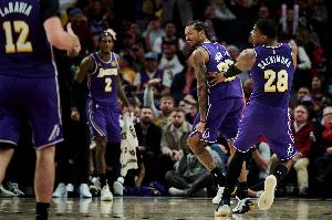 這7分鐘里,湖人上場(chǎng)拼殺過的角色球員包括海斯、八村塁、艾頓、斯瑪特、拉拉維亞,整個(gè)一個(gè)“失意者聯(lián)盟”——