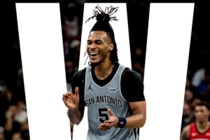 比賽結(jié)束后,馬刺官推曬出了本場比賽的贏球海報,卡斯?fàn)柕巧戏饷妗?/p>