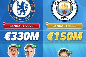 1.切爾西:2023年冬窗花費3.3億歐,簽下恩佐、穆德里克、巴迪亞西勒、馬杜埃凱、古斯托、桑托斯、福法納、菲利克斯