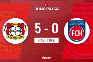 體育資訊11月08日訊 勒沃庫(kù)森半場(chǎng)5-0領(lǐng)先海登海姆,對(duì)手被迫33分鐘連換兩人。