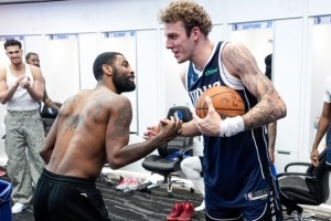 本場(chǎng)比賽結(jié)束后,獨(dú)行俠將比賽用球送給了凱利,歐文在更衣室與其擁抱致意!