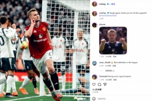 體育資訊11月9日訊 曼聯(lián)在本輪英超焦點(diǎn)戰(zhàn)2-2絕平熱刺,德里赫特頭槌破門(mén)。