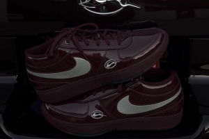 這款雪佛蘭 Impala x Nike Book 1 PE,采用了和他的愛車一樣的亮黑色,鞋外側也加入了車標細節(jié)。整體主題與他的愛車完美搭配。