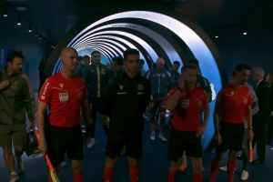 西班牙人球員賽前帶著11只待領養(yǎng)的狗狗踏上球場,為狗狗尋找負責任的收養(yǎng)者。