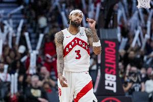 體育資訊11月9日訊 NBA常規(guī)賽,猛龍半場(chǎng)63-68落后76人。